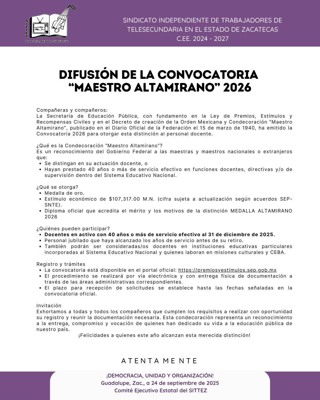 Es un reconocimiento del Gobierno Federal a las maestras y maestros nacionales o extranjeros que: